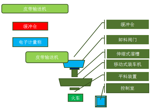 该快速定量装车系统采用快速计量系统和移动装车系统相结合,计量系统采用静态计量,精度大于5‰。该系统主要由输送系统、计量装车系统(布料机构、缓冲料仓、漏斗型定量仓、称重系统、鄂式配料闸门、平板闸门)、轨道移动式装车装置(平仓系统)、控制系统、除尘系统等。 |
